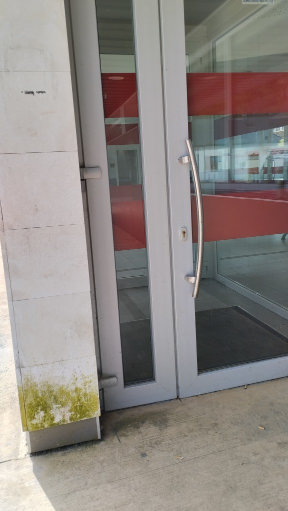 La cafetería cerrada, no hay venta de billetes. La pantalla que debería indicar el movimiento de autobuses se encuentra apagada. ¡El único cartel con el horario de autobuses es del año 2021! Cristales sucios, papeleras desbordadas, cigarrillos y suciedad por todas partes. Esta es la situación de un edificio que comienza a deteriorarse ante la desidia y falta de mantenimiento por parte del equipo de gobierno del ayuntamiento de Bembibre.