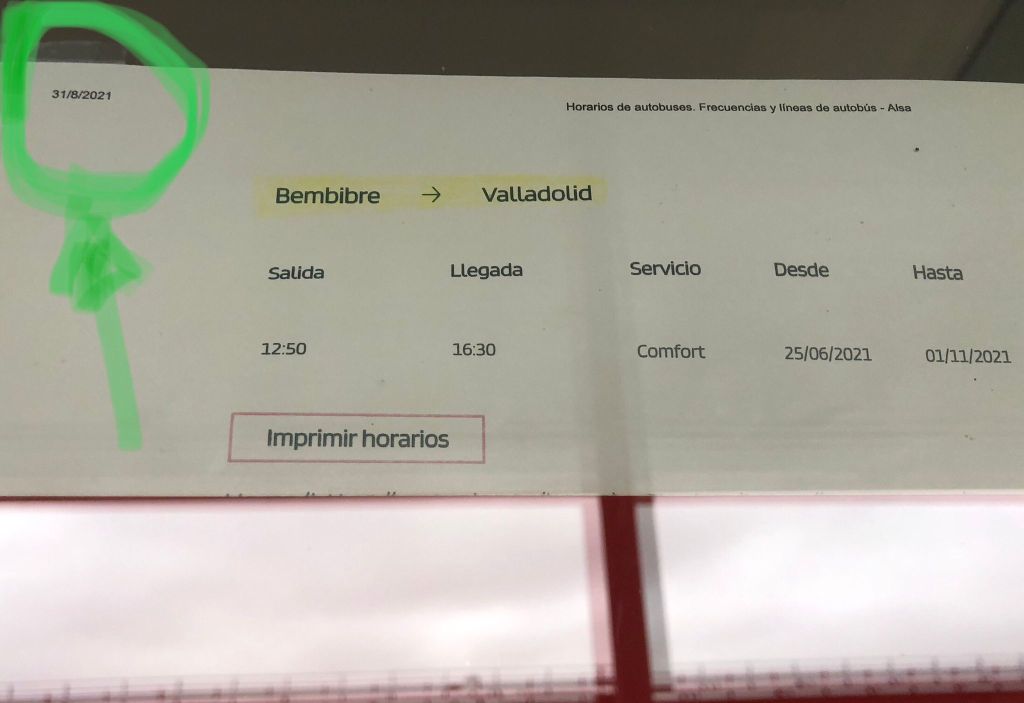 «Comentan los vecinos la incertidumbre al no saber los horarios actuales de los autobuses», dice Elsa García. Algunas personas, deben acudir a agencias de viajes para comprar billetes. Otros han esperado el autobús y, al no tener billete comprado, se han quedado en tierra”
